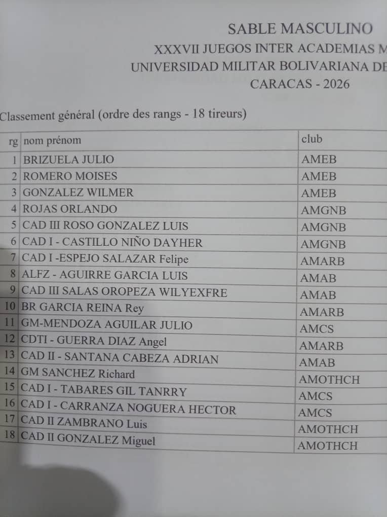 | Pos | Atleta / Participante | Academia | Medalla |